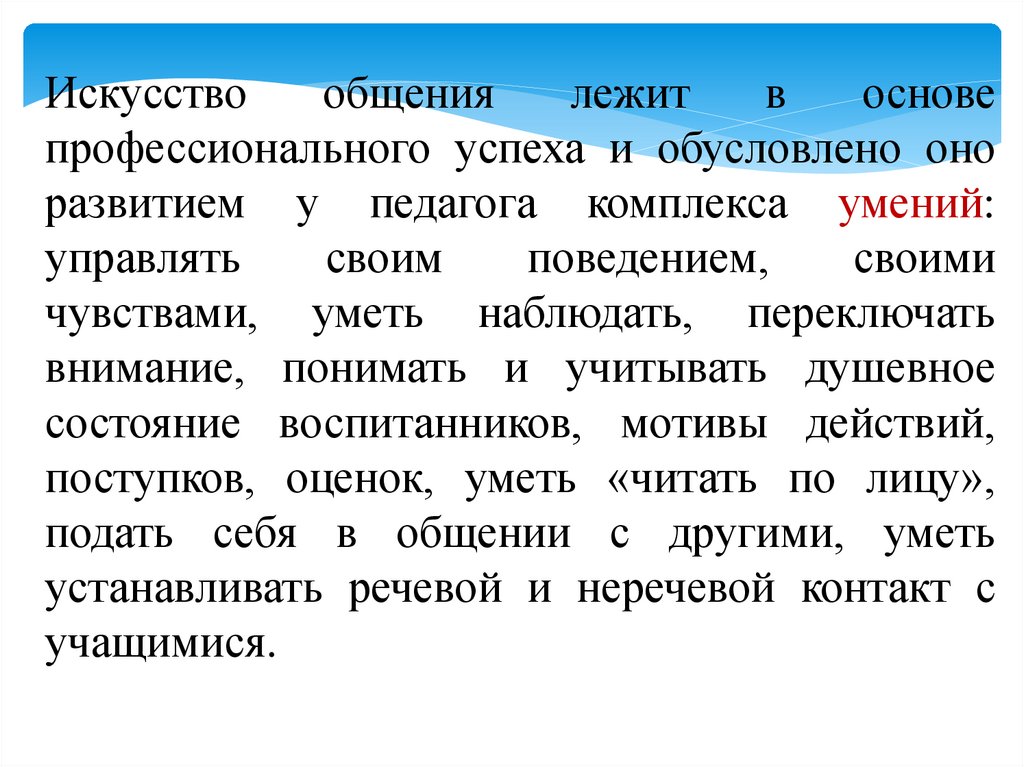 Общение основа, неотъемлемый элемент трудаучителя, воспитателя, тренера,