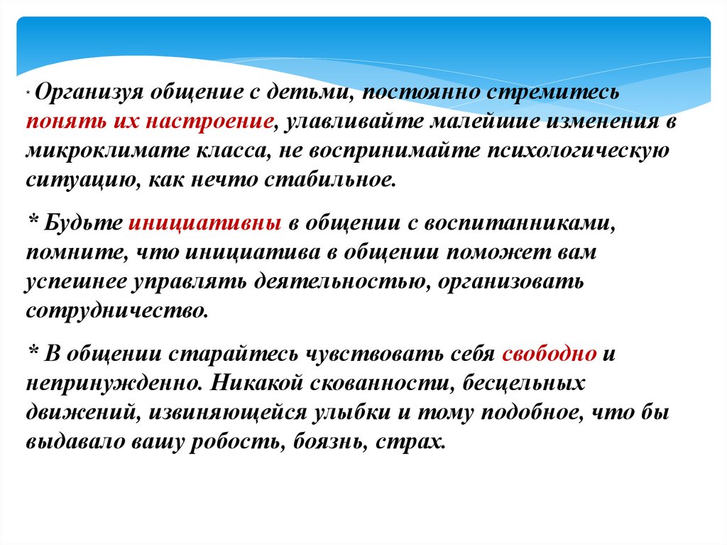 Организуя общение с детьми, постоянно стремитесьпонять их настроение, улавливайте малейшие изменения в