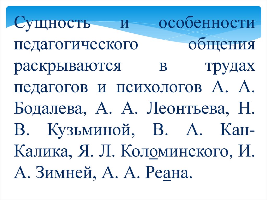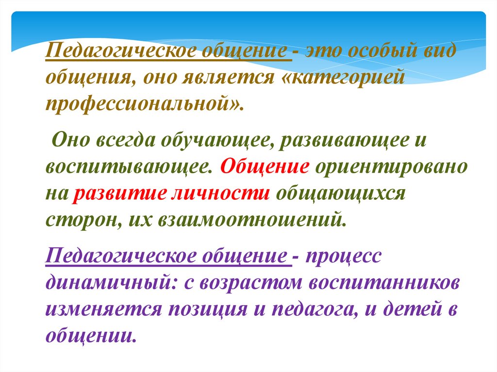 Педагогическое общение - это особый видобщения, оно является «категорией