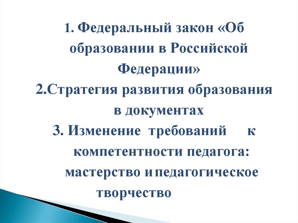 1. Федеральный закон «Обобразовании в Российской