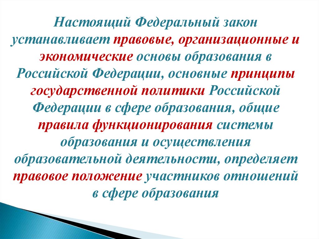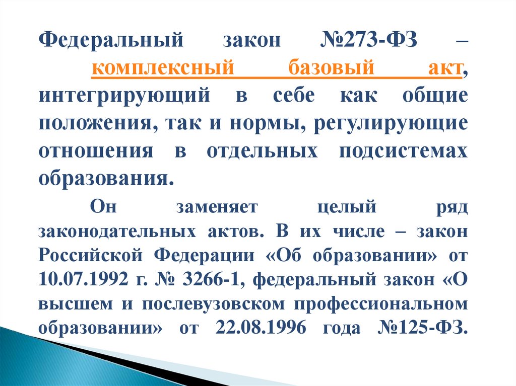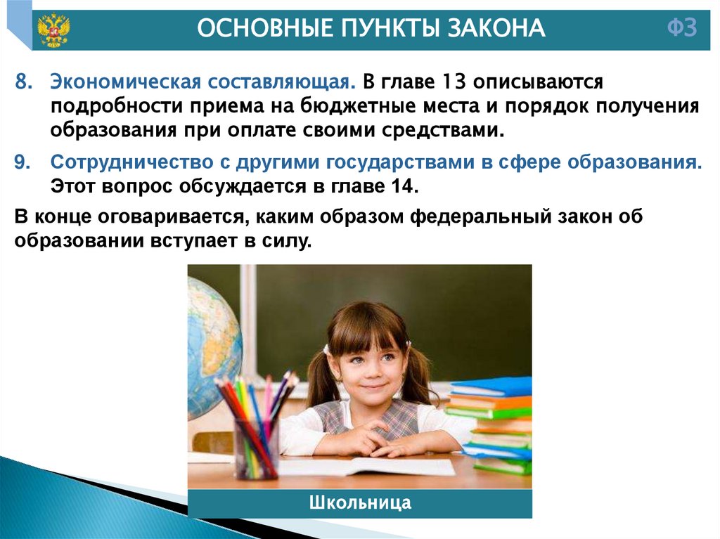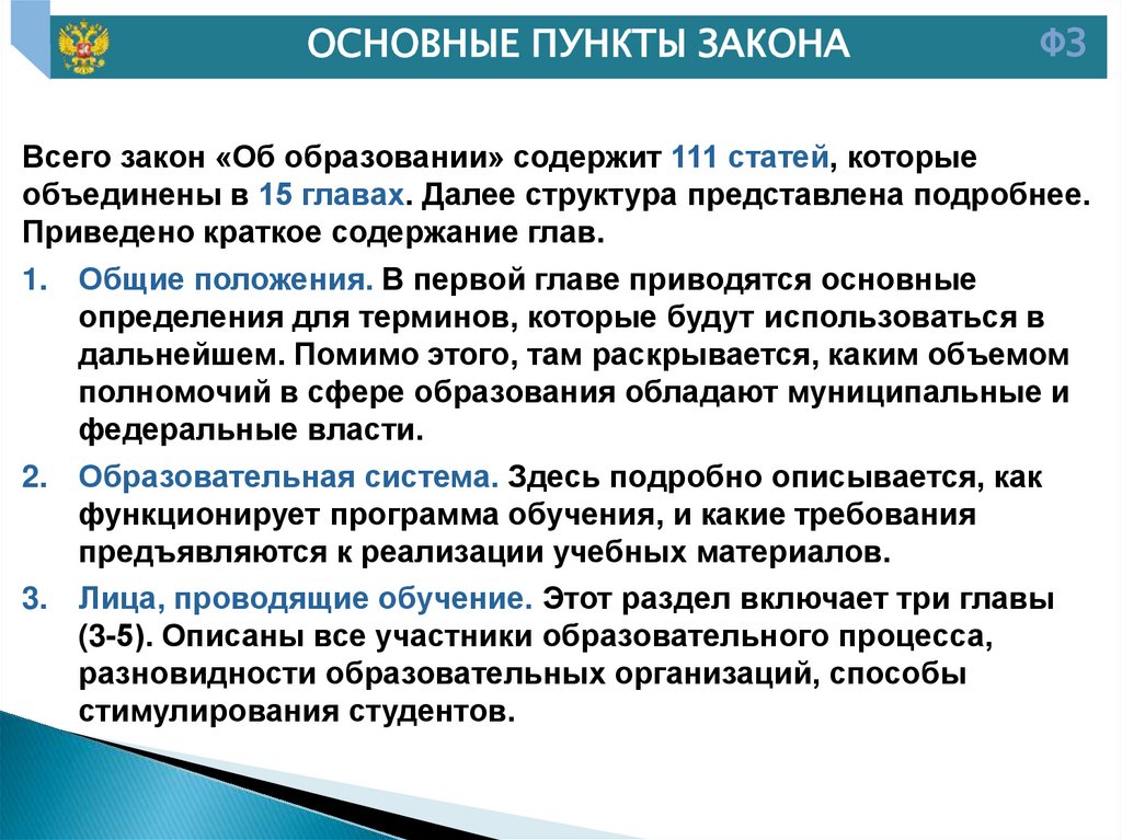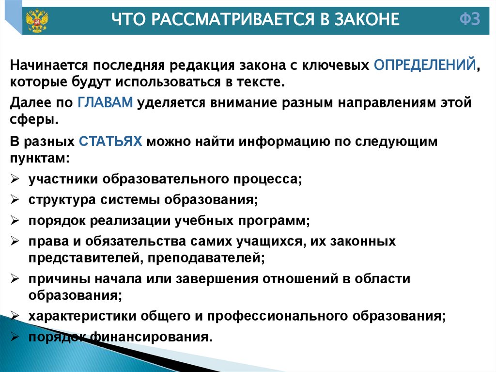 10. Федеральный закон № 273-ФЗ имеет следующее содержание: