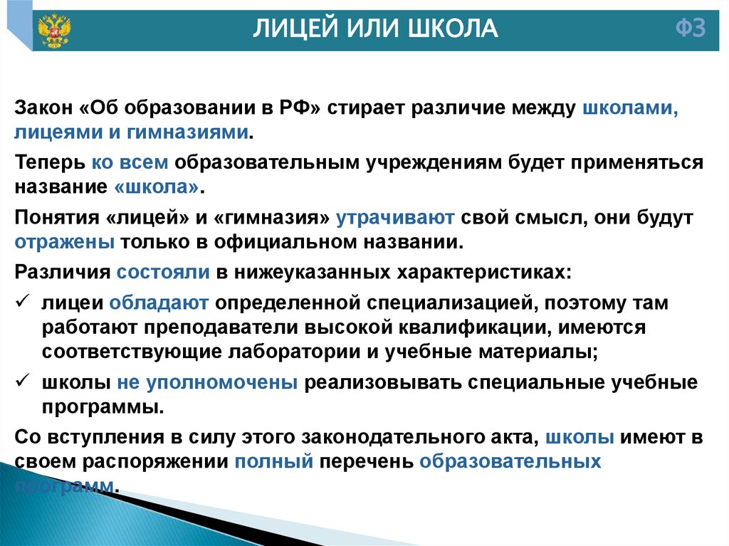 Российской Федерации «Об образовании» от