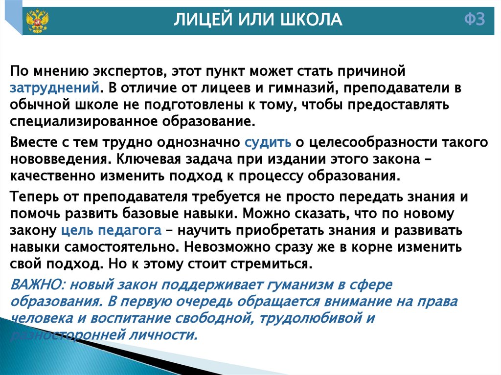 11. Федеральный закон № 273-ФЗ имеет следующее содержание: