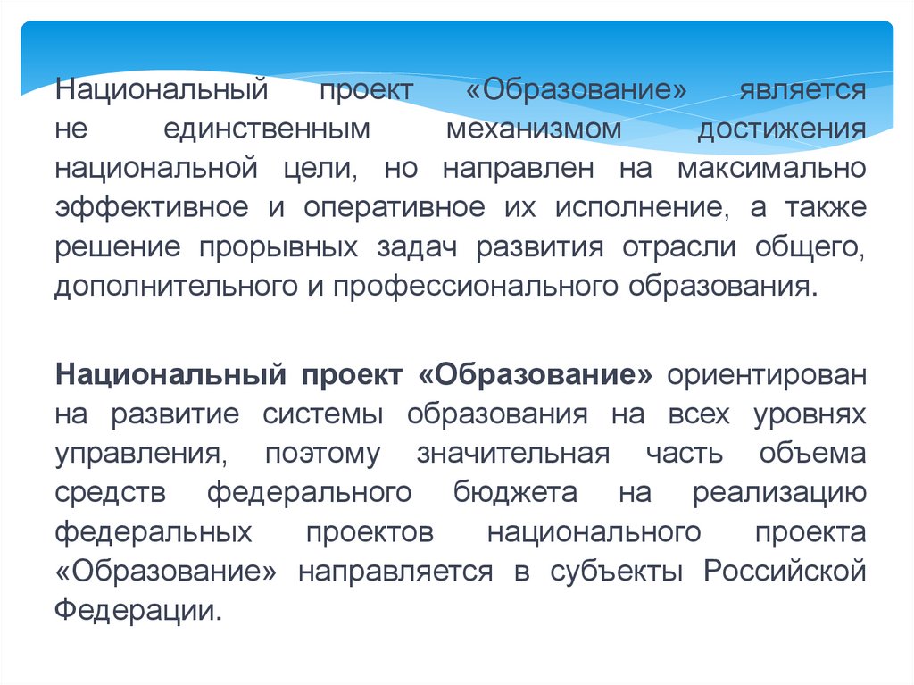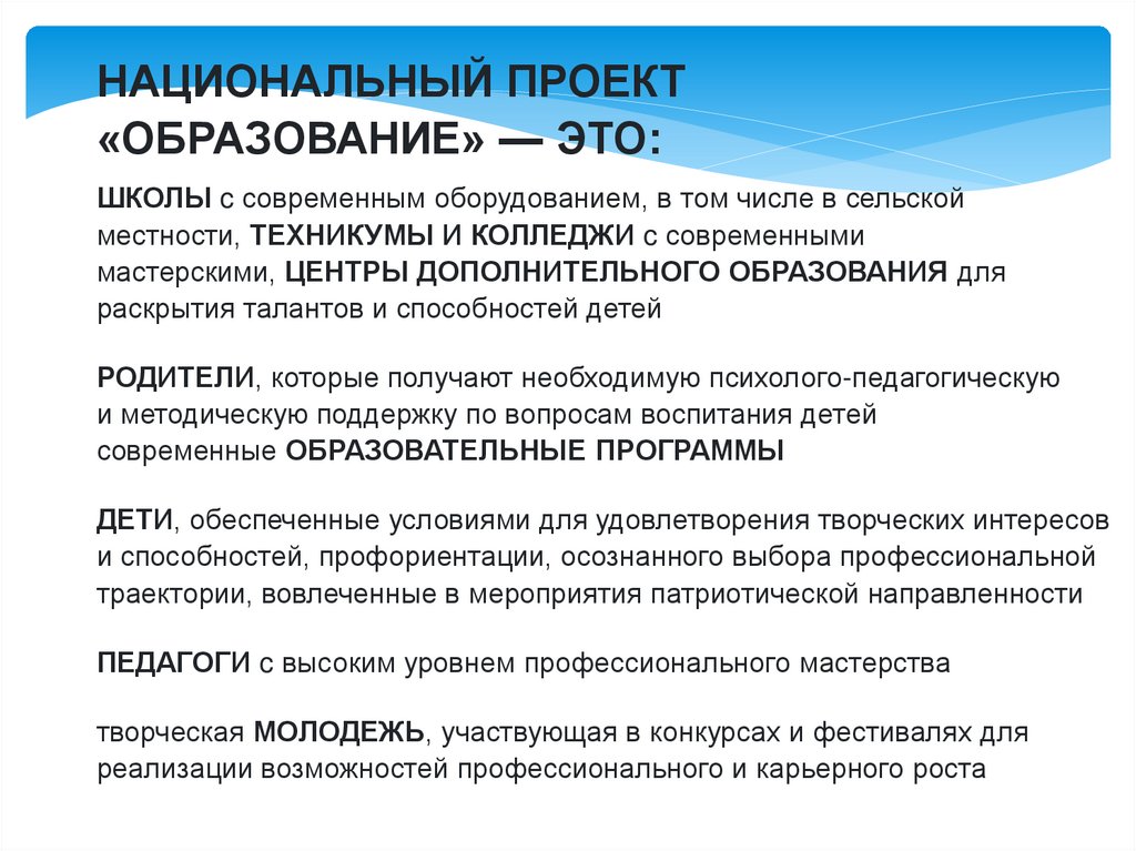 Национальный проект «Образование» ориентирован