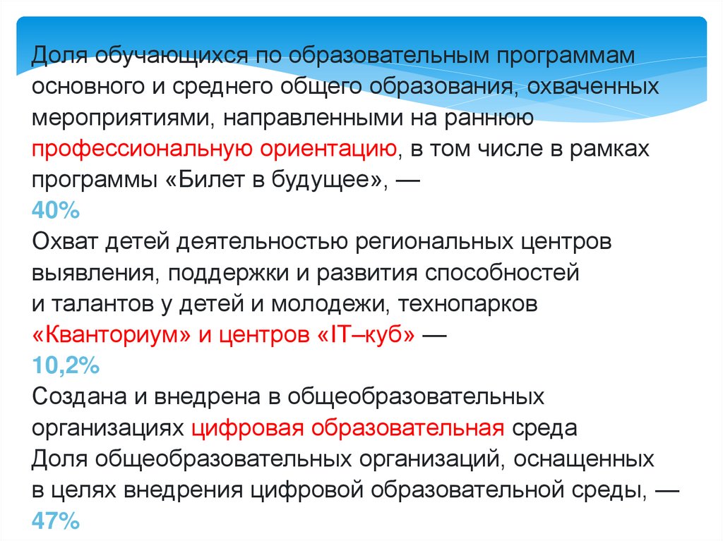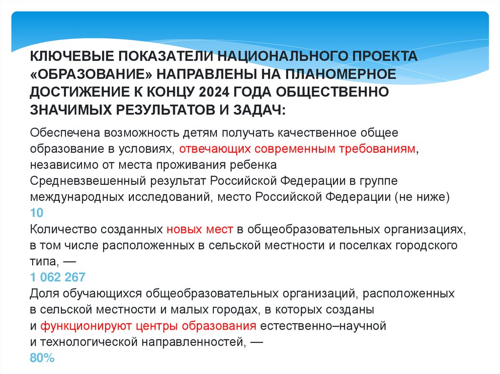 КЛЮЧЕВЫЕ ПОКАЗАТЕЛИ НАЦИОНАЛЬНОГО ПРОЕКТА«ОБРАЗОВАНИЕ» НАПРАВЛЕНЫ НА ПЛАНОМЕРНОЕ