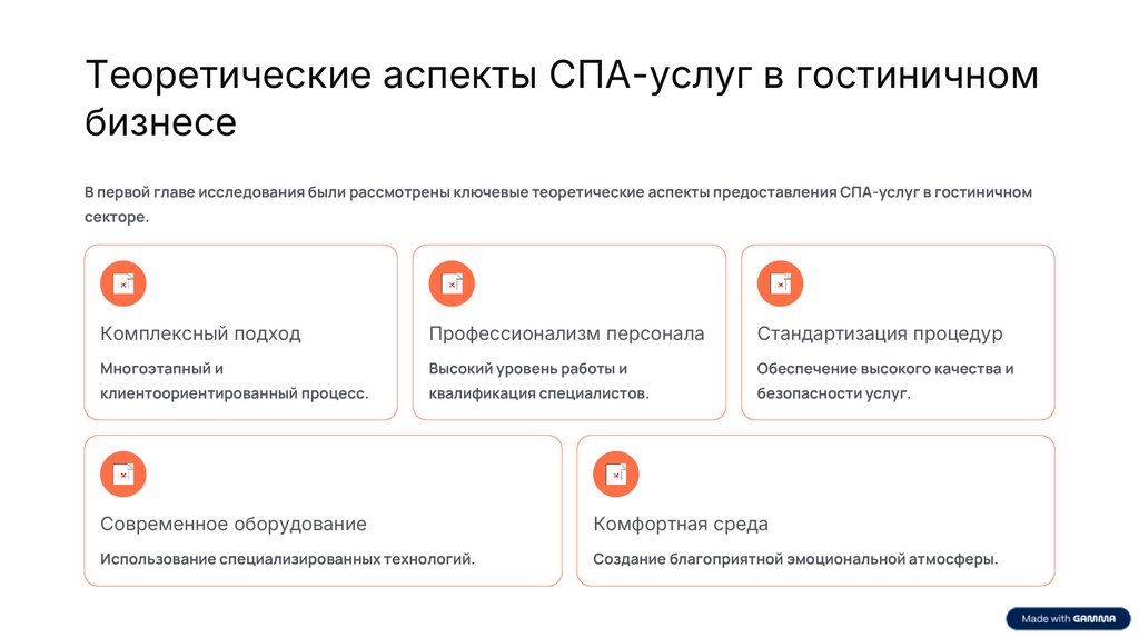 В первой главе исследования были рассмотрены ключевые теоретические аспекты предоставления СПА-услуг в гостиничном