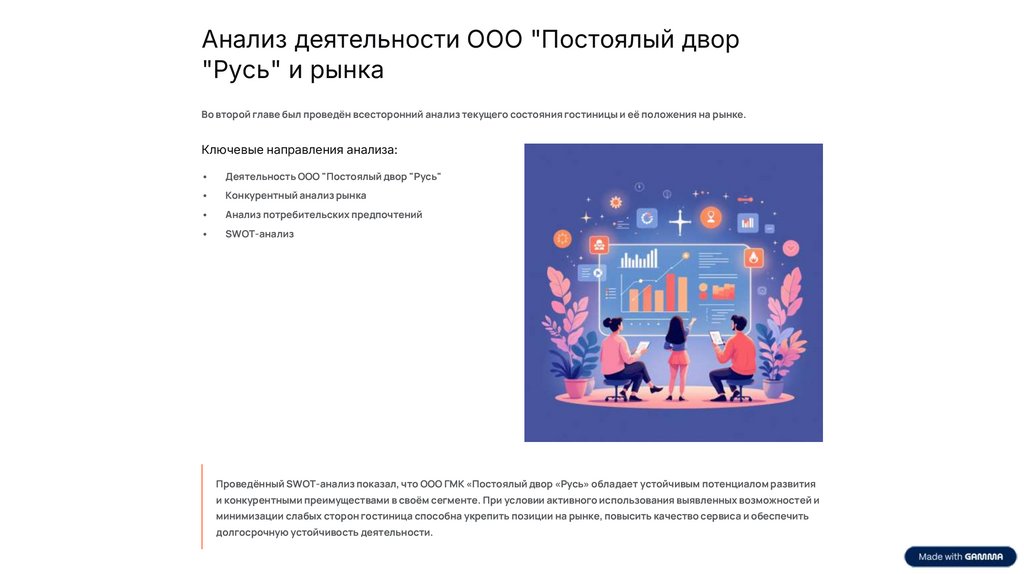 Во второй главе был проведён всесторонний анализ текущего состояния гостиницы и её положения на рынке.