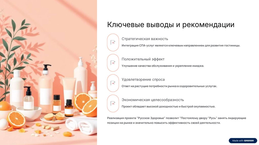 Интеграция СПА-услуг является ключевым направлением для развития гостиницы.