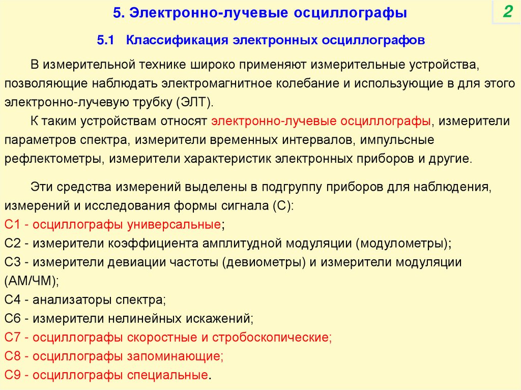 К таким устройствам относят электронно-лучевые осциллографы, измерители