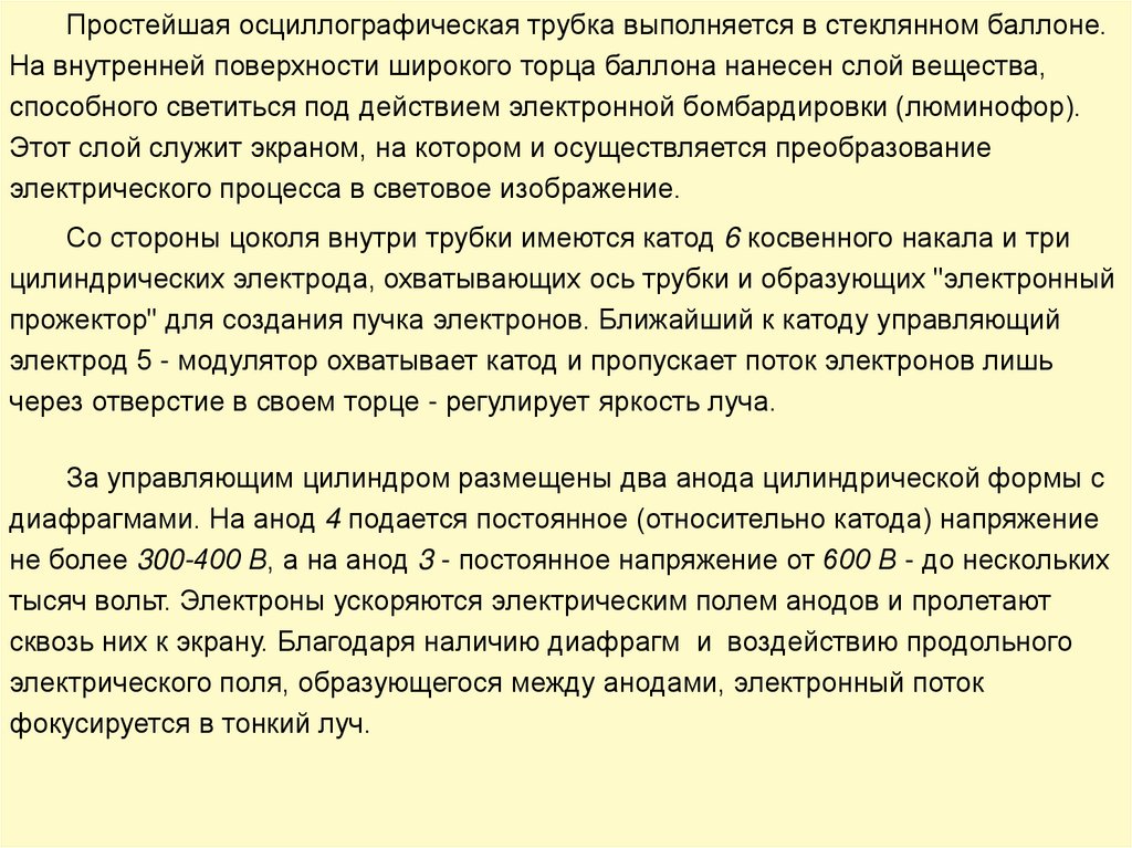 электрод 5 - модулятор охватывает катод и пропускает поток электронов лишь
