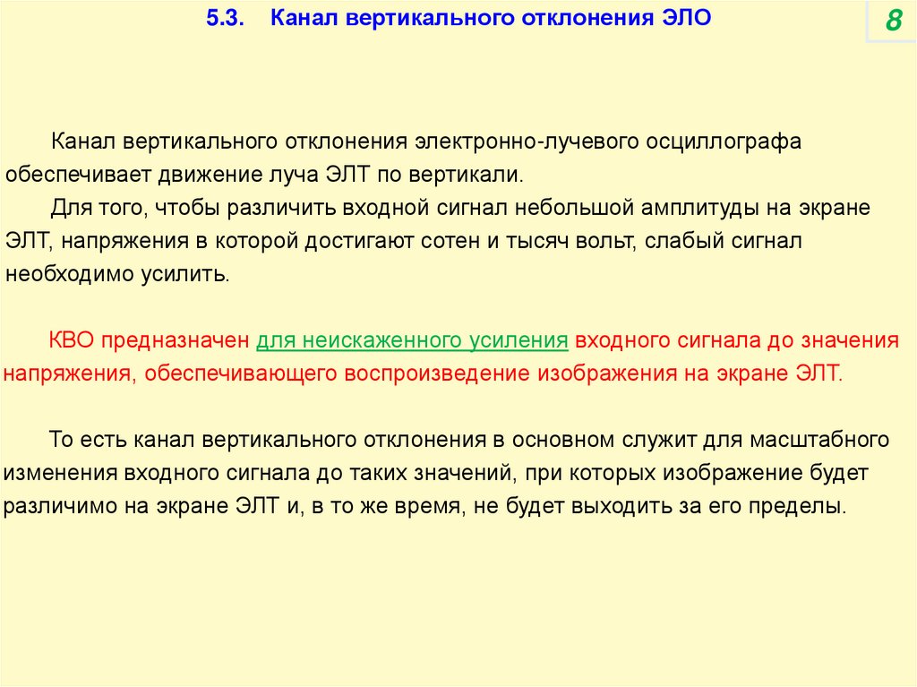 Канал вертикального отклонения предназначен для отклонения луча ЭЛТ под