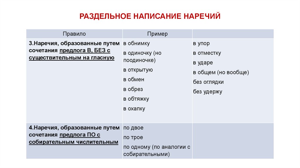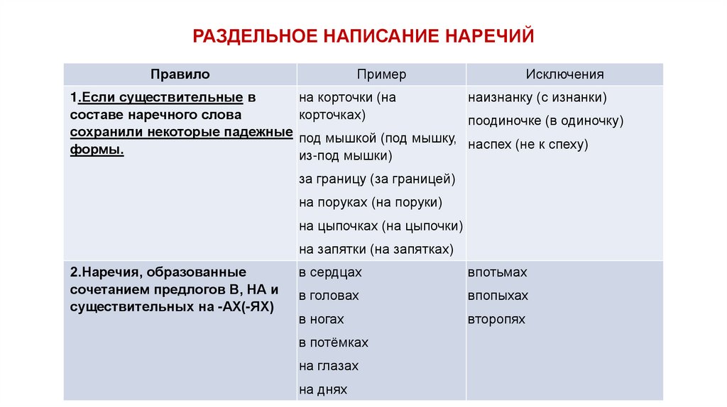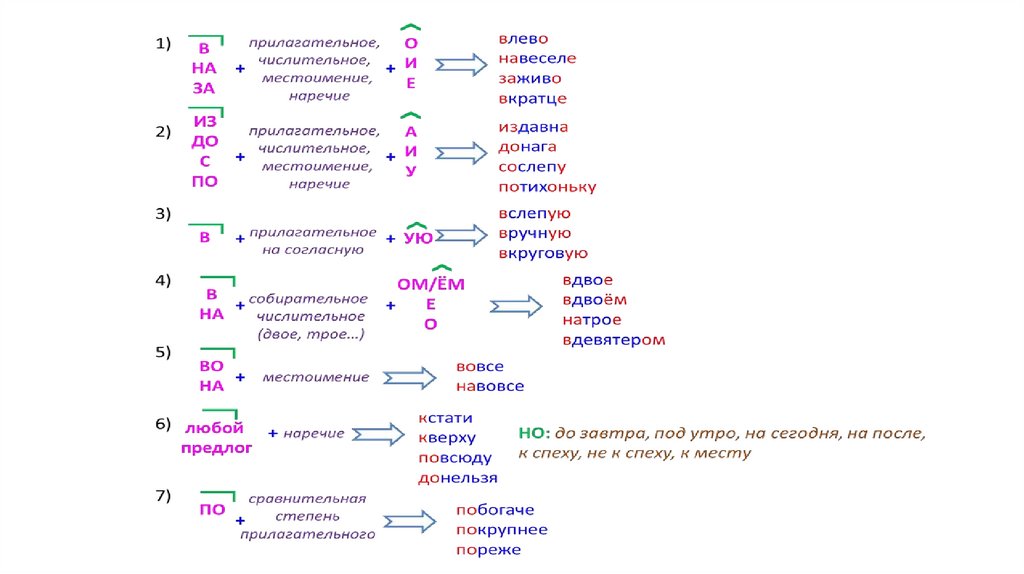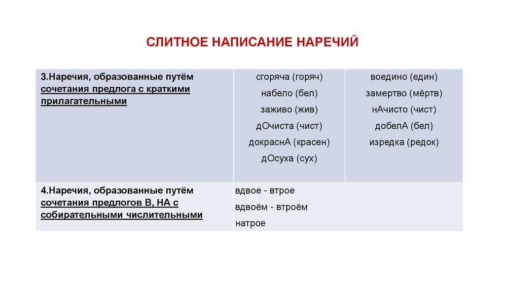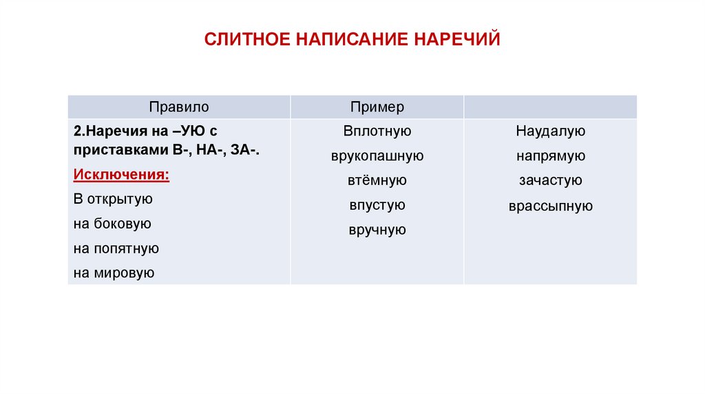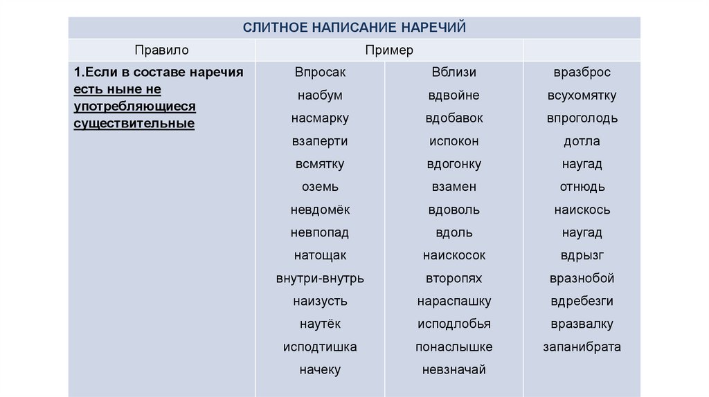 СЛИТНОЕ НАПИСАНИЕ НАРЕЧИЙПравило