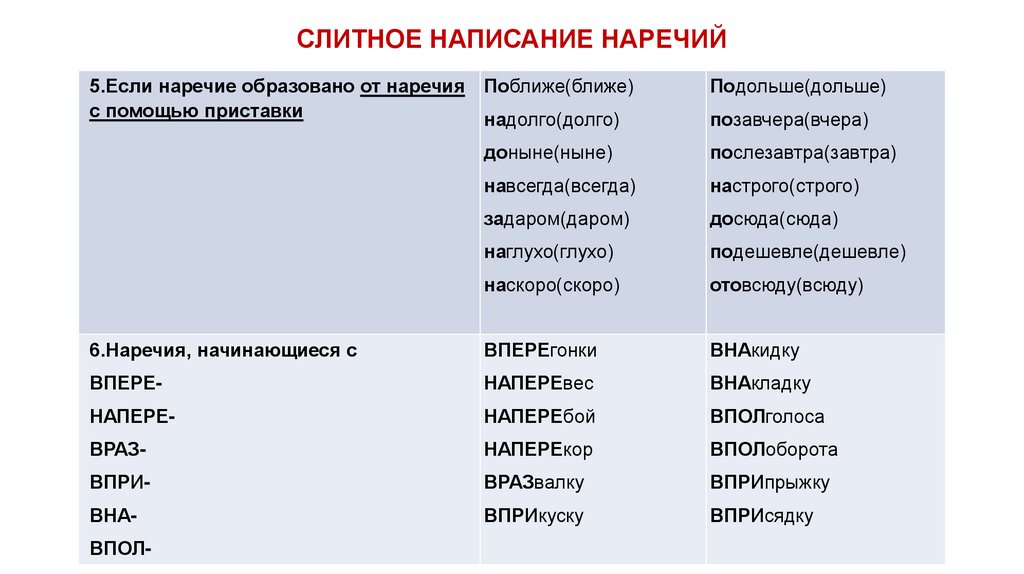 слитное написание наречий
