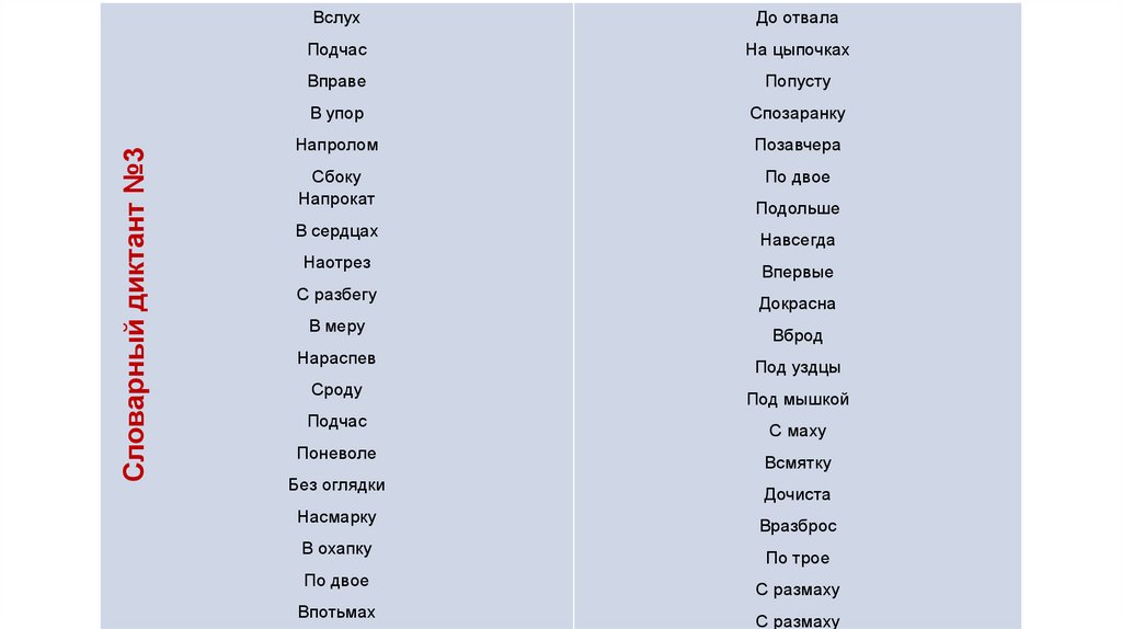 СЛОВ РАЗНЫХ ЧАСТЕЙ