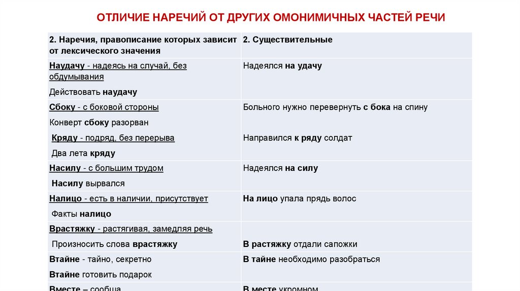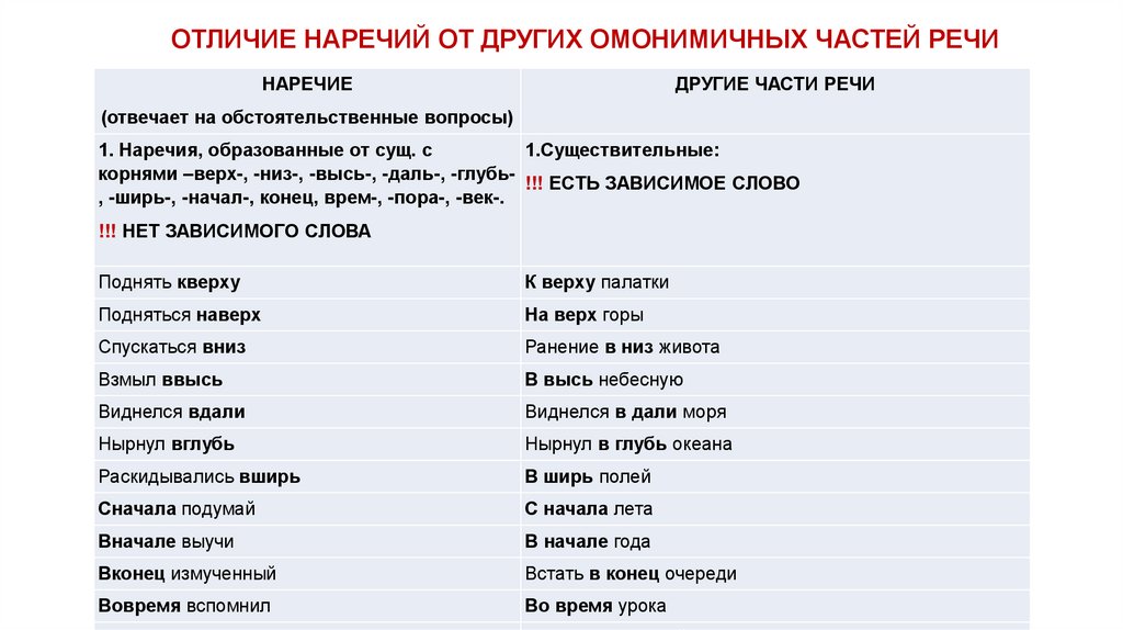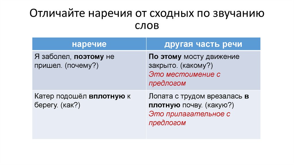 Отличайте наречия от сходных по звучаниюслов