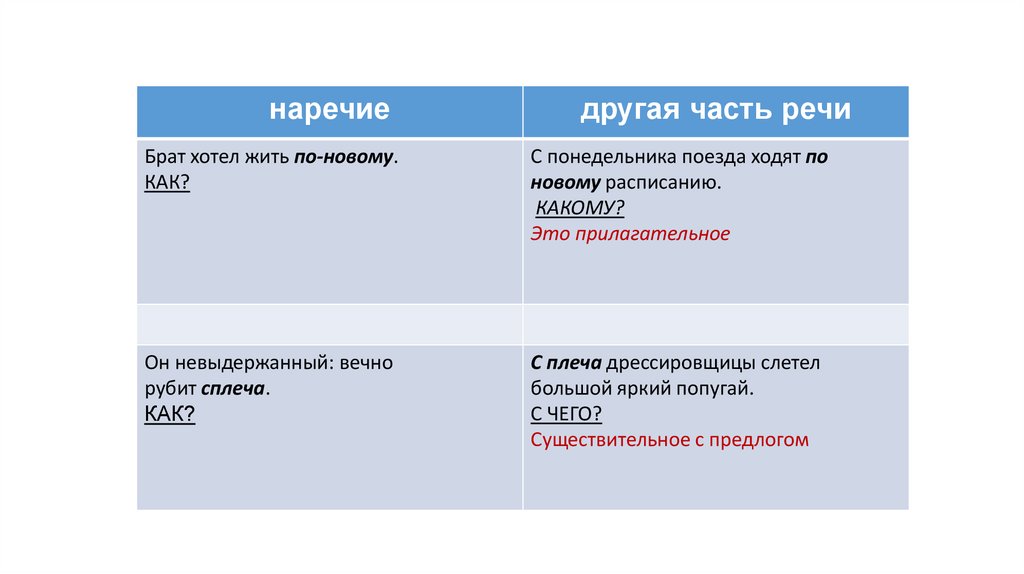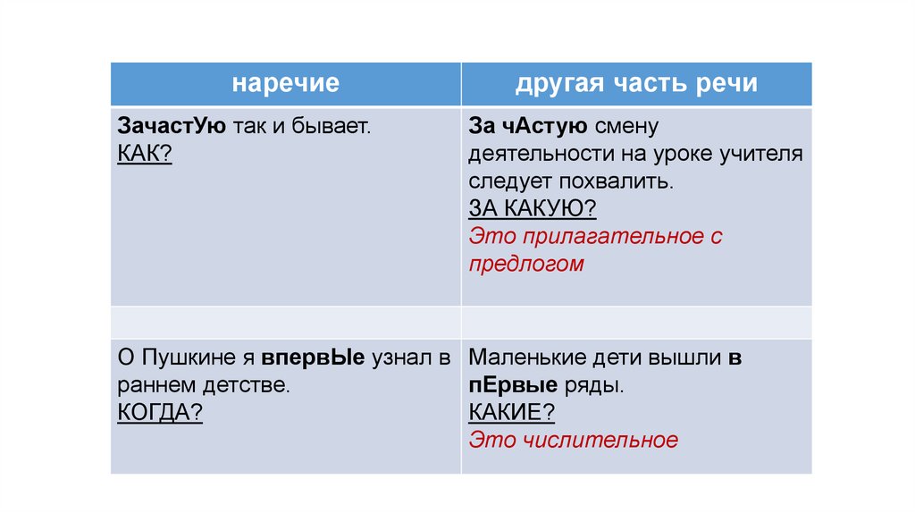 наречиедругая часть речи