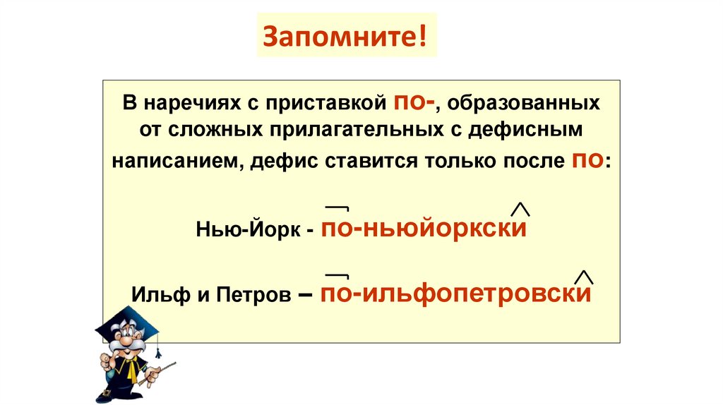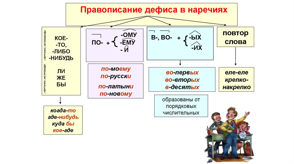 Правописание дефиса в наречиях