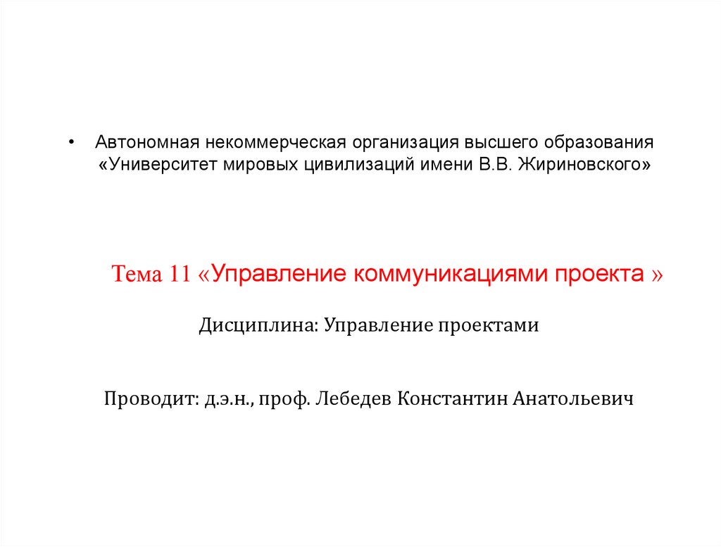 Тема 11 «Управление коммуникациями проекта »