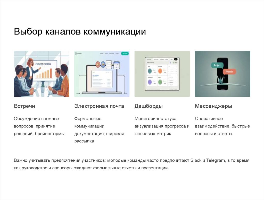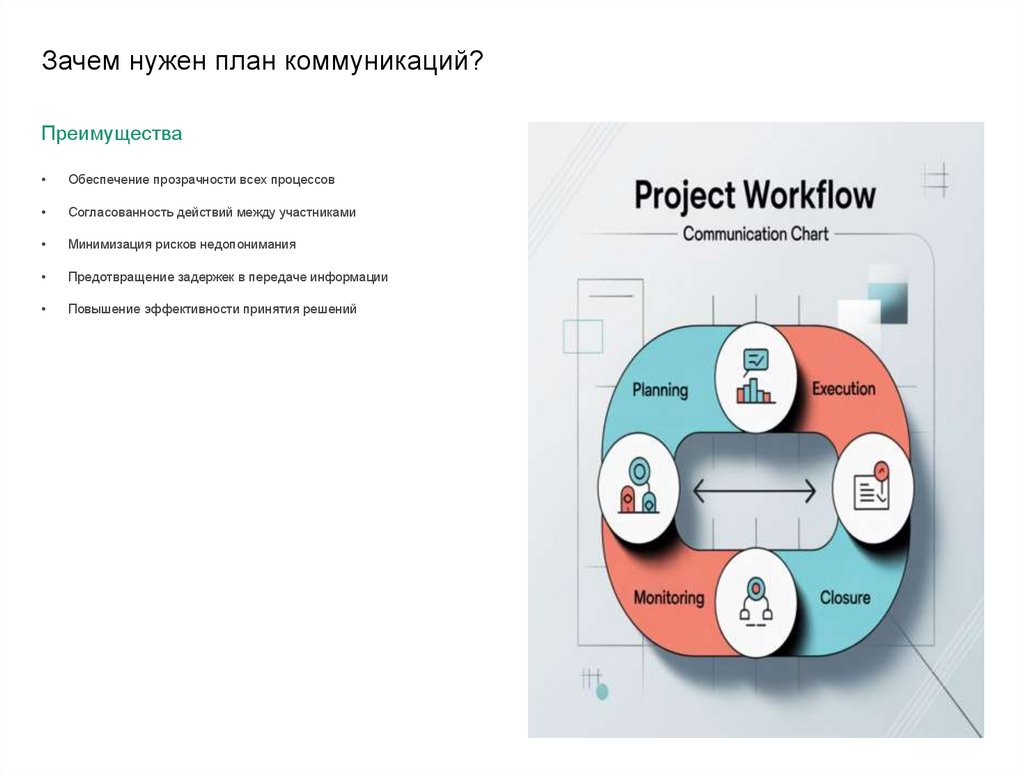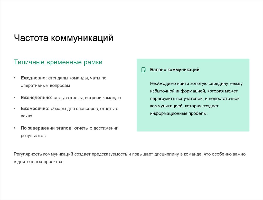 Регулярный пересмотр плана коммуникаций (например, в конце каждой фазы проекта) помогает поддерживать