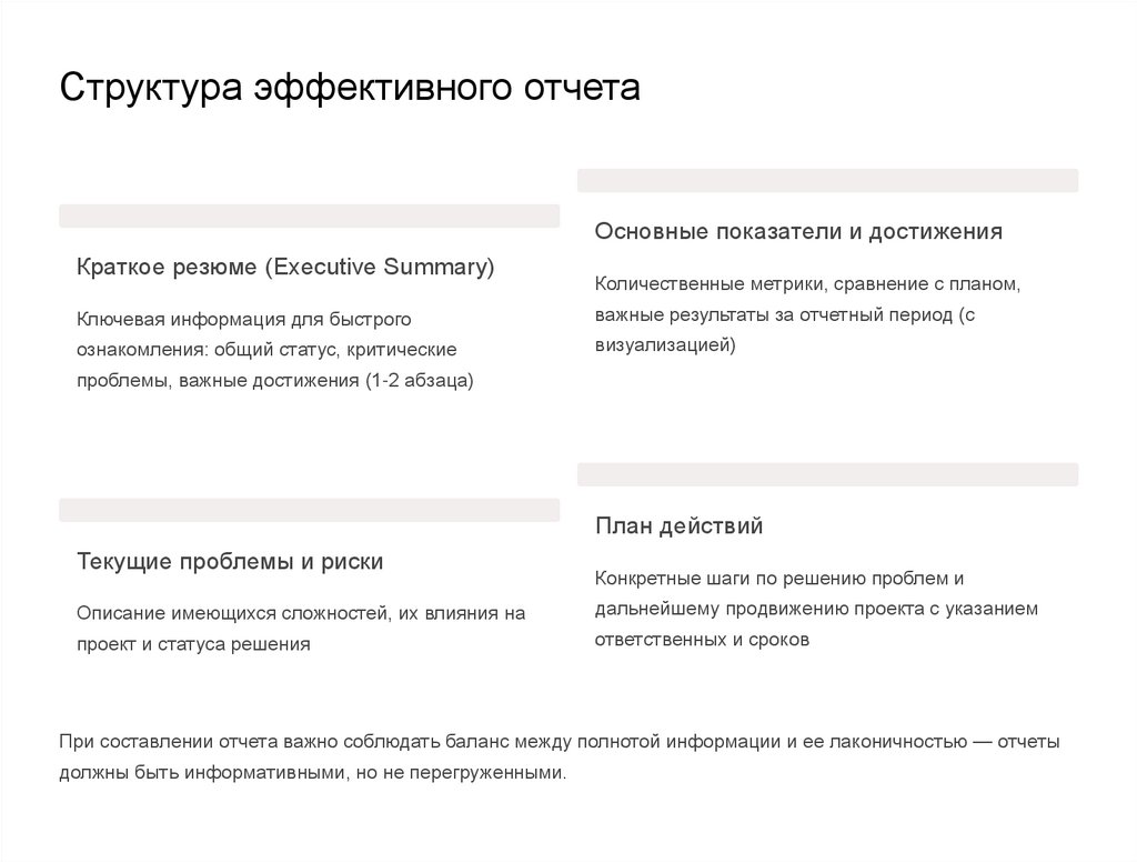 При составлении отчета важно соблюдать баланс между полнотой информации и ее лаконичностью — отчеты