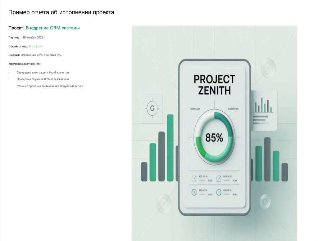 Пример отчета об исполнении проектаПроект: Внедрение CRM-системы