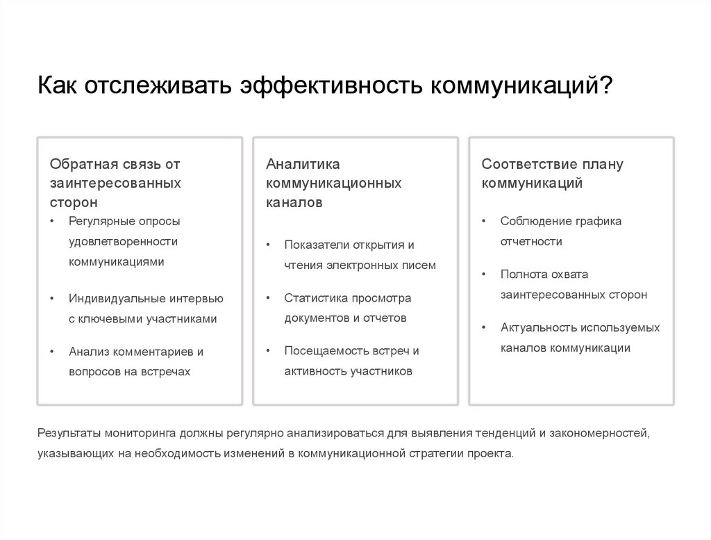 Регулярный мониторинг эффективности коммуникационных