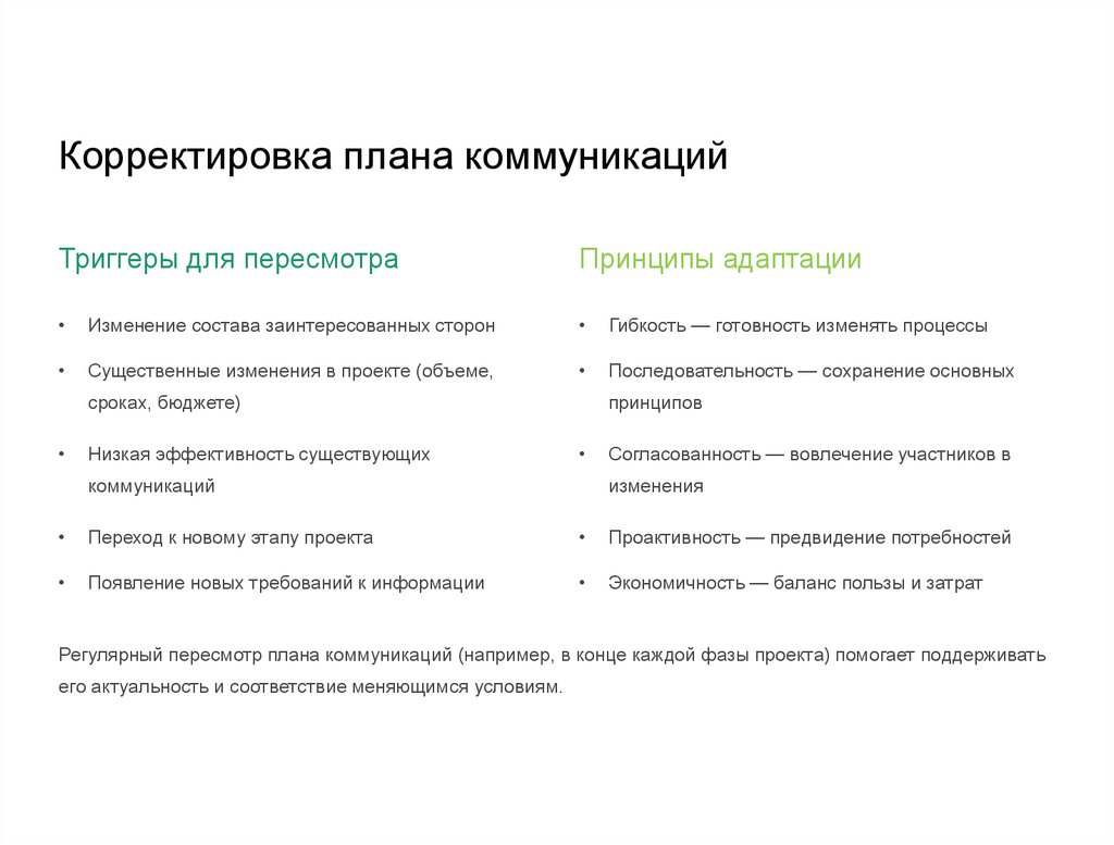 Корректировка плана коммуникацийТриггеры для пересмотра