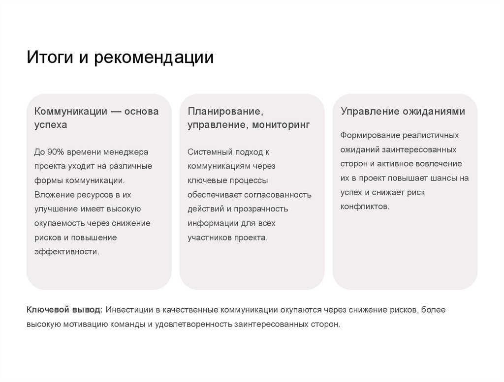 Итоги и рекомендацииКоммуникации — основа