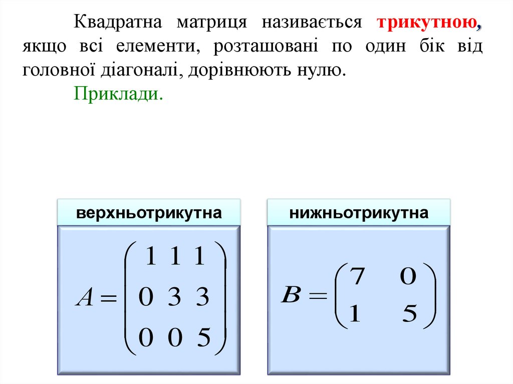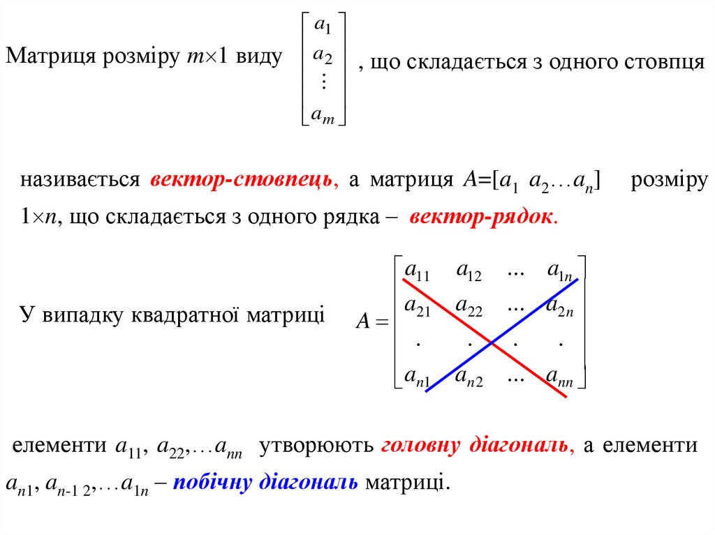 m≠n, то матриця називається прямокутною. Якщо m=n, то матриця