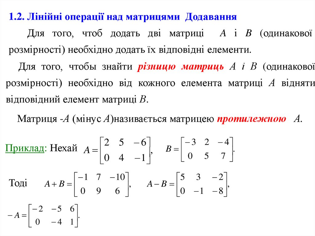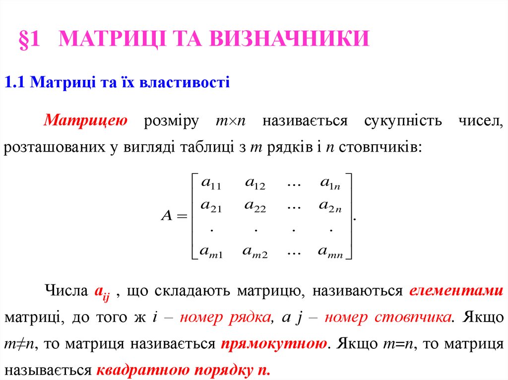 §1 МАТРИЦІ ТА ВИЗНАЧНИКИ1.1 Матриці та їх властивості