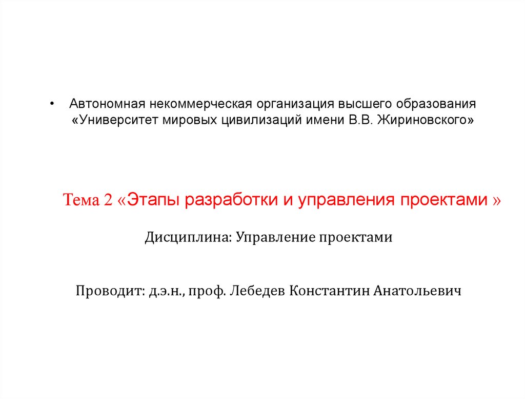 Тема 2 «Этапы разработки и управления проектами »