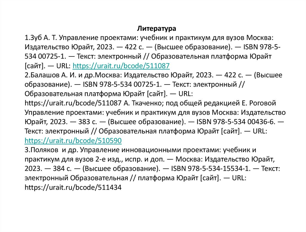 Литература1.Зуб А. Т. Управление проектами: учебник и практикум для вузов Москва: