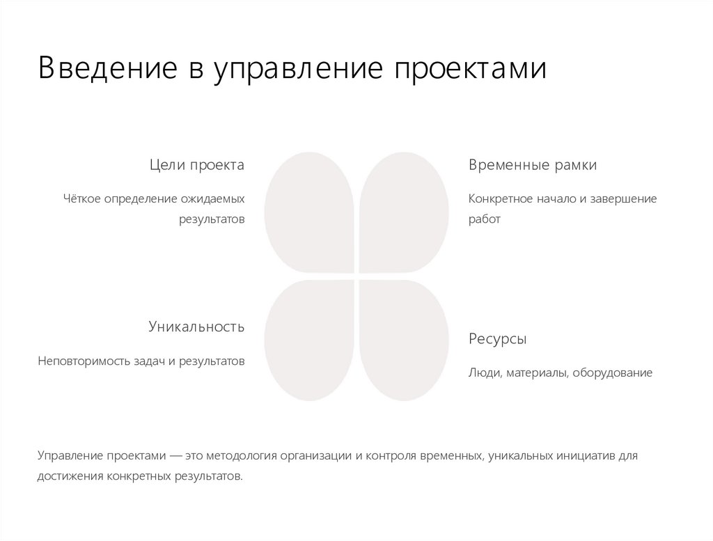 Управление проектами — это методология организации и контроля временных, уникальных инициатив для