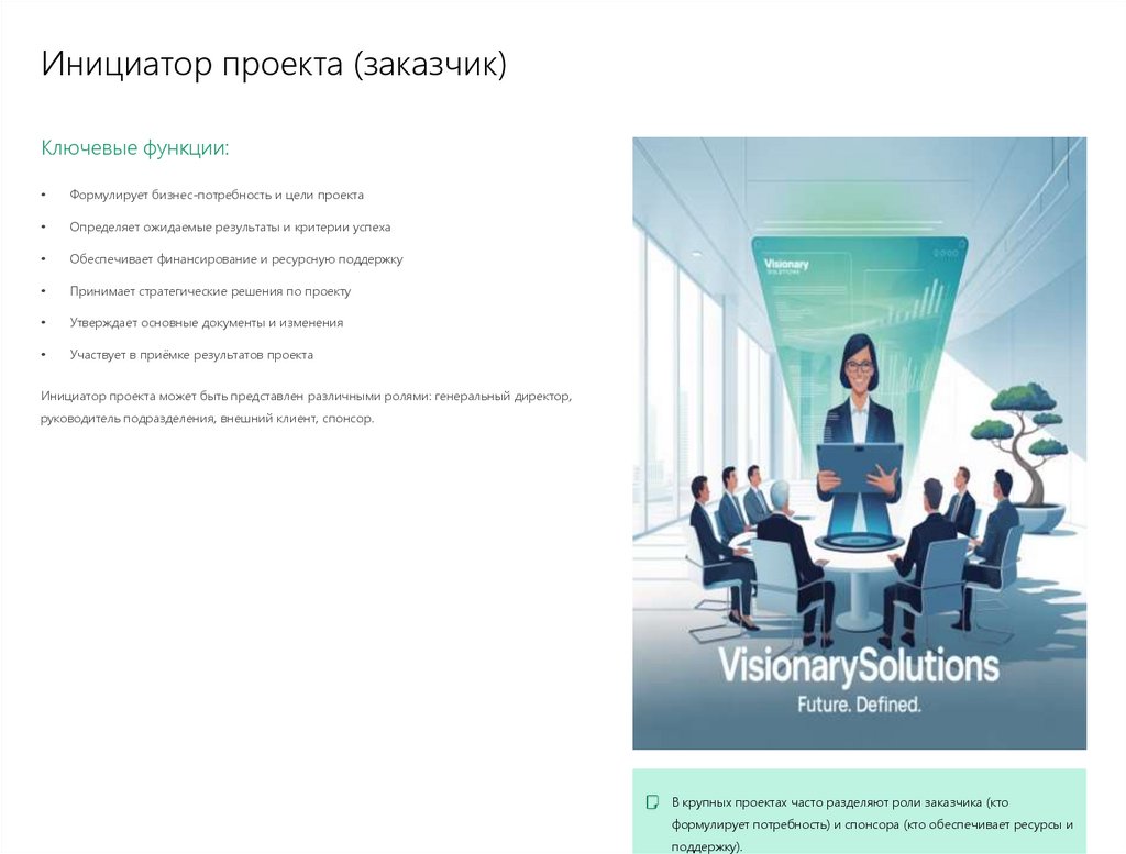 решение о запуске проекта. Формулирует