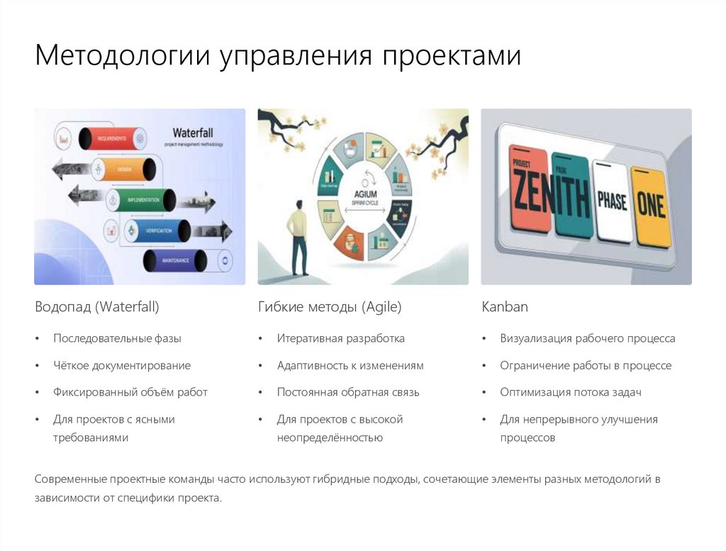 методологию (Waterfall, Agile, гибридную) в
