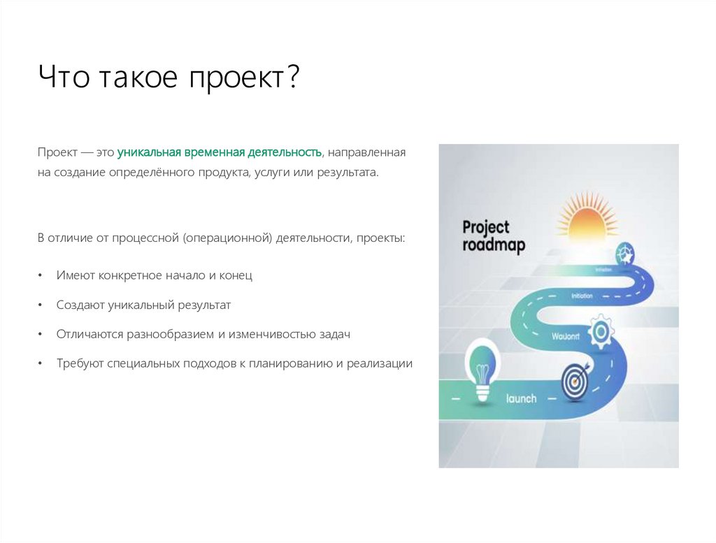 Что такое проект?Проект — это уникальная временная деятельность, направленная