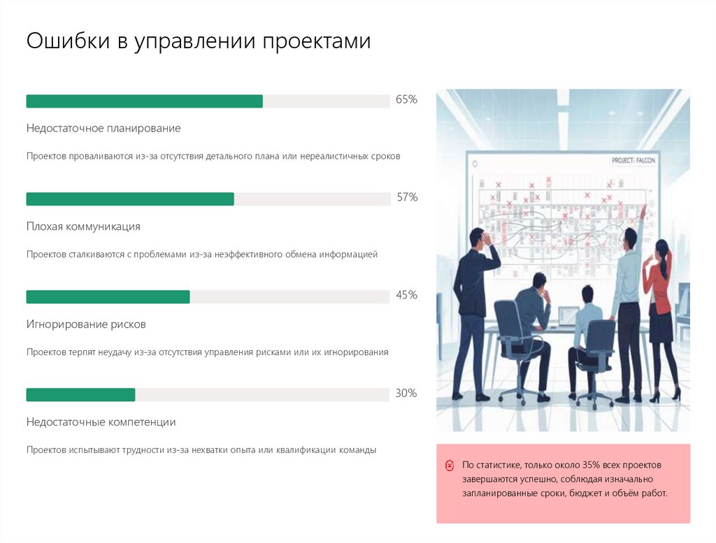 Ошибки в управлении проектами65%