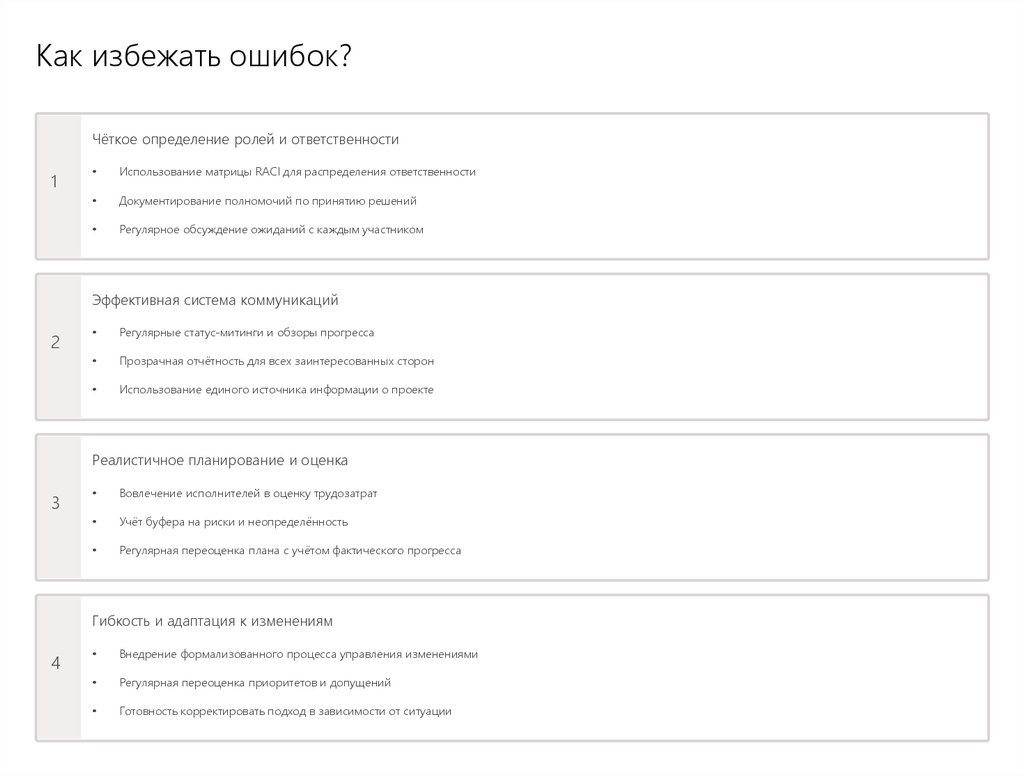 Как избежать ошибок?Чёткое определение ролей и ответственности