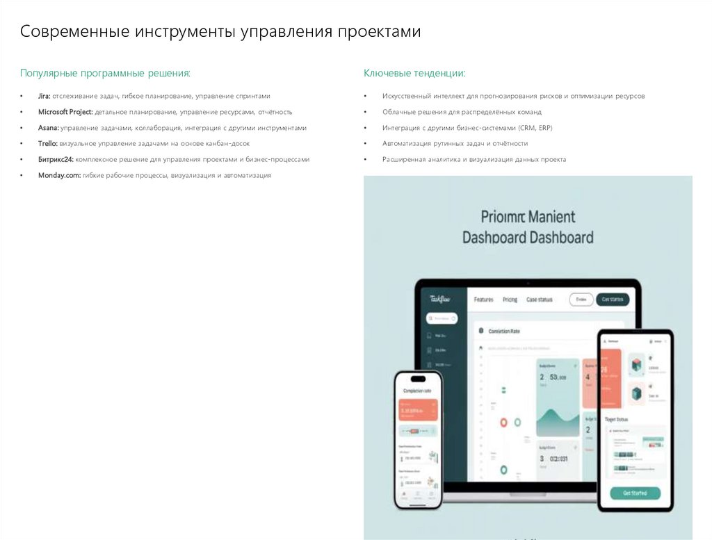Современные инструменты управления проектамиПопулярные программные решения: