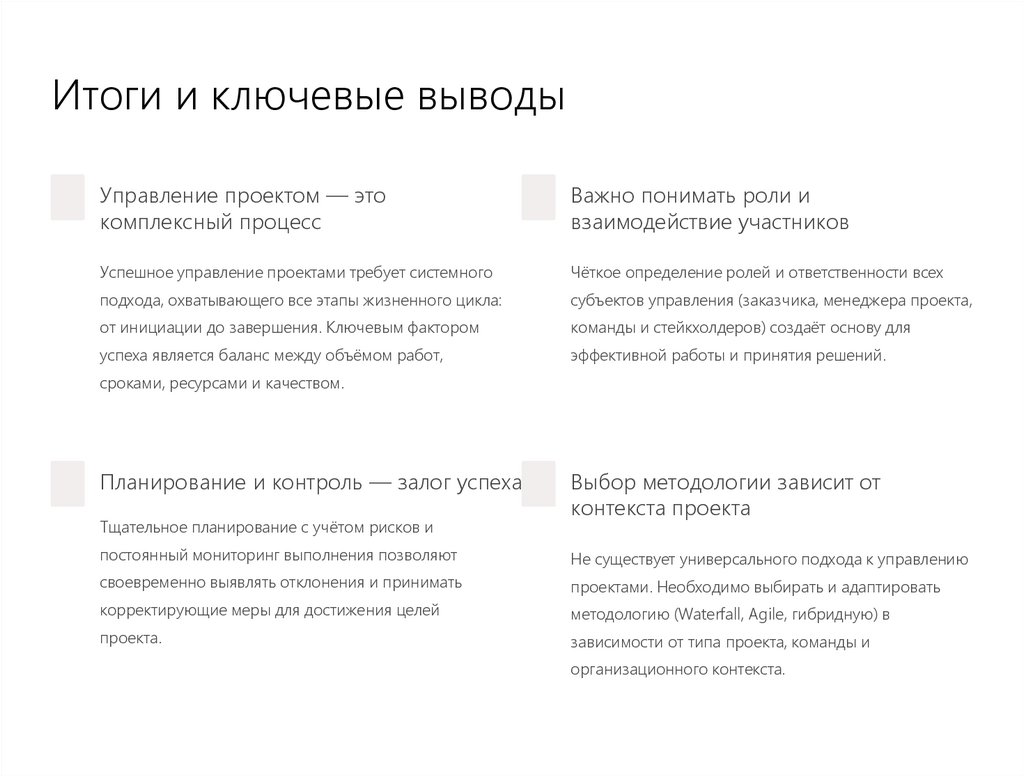 Итоги и ключевые выводыУправление проектом — это