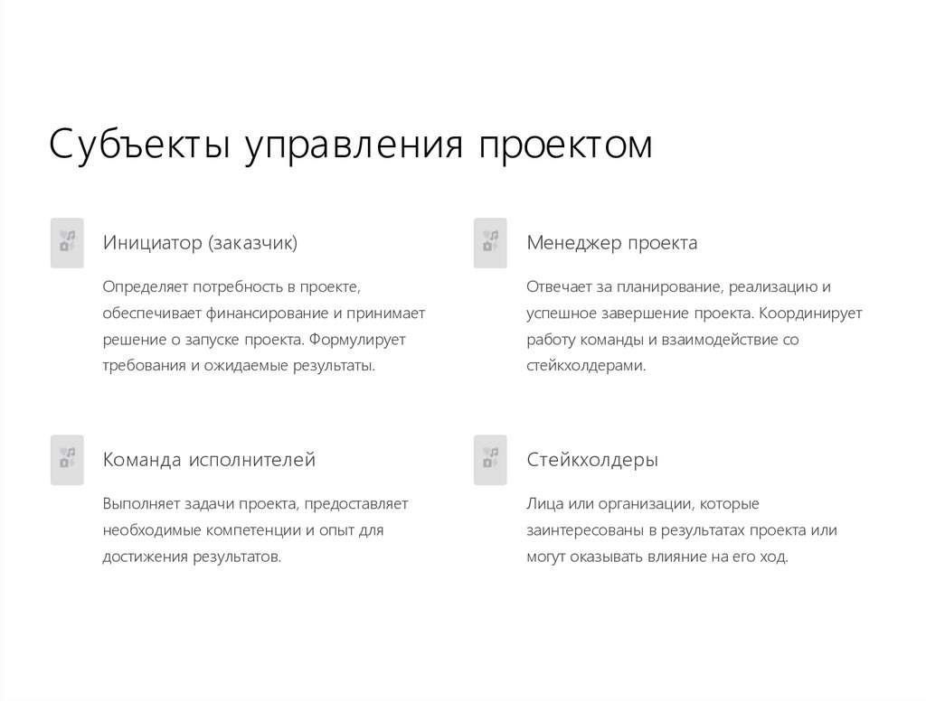 субъектов управления (заказчика, менеджера проекта,