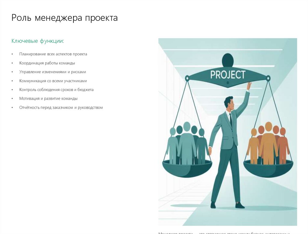 Роль менеджера проектаКлючевые функции: