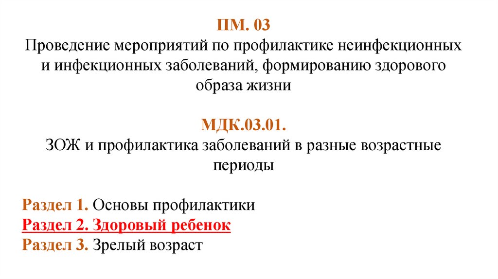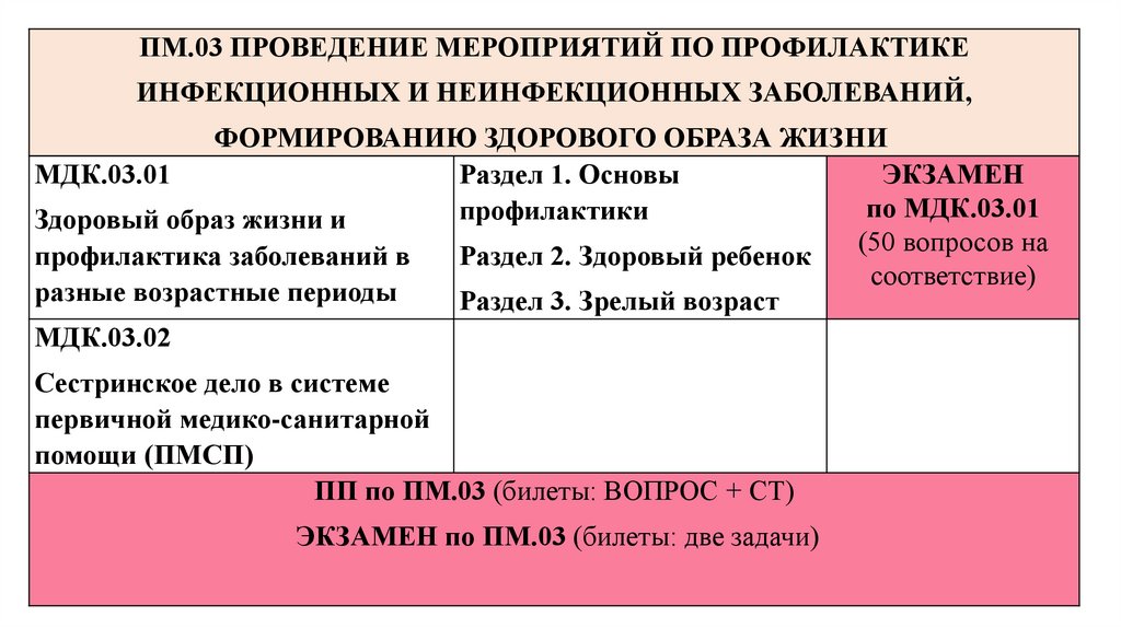 ПМ.03 ПРОВЕДЕНИЕ МЕРОПРИЯТИЙ ПО ПРОФИЛАКТИКЕИНФЕКЦИОННЫХ И НЕИНФЕКЦИОННЫХ ЗАБОЛЕВАНИЙ,