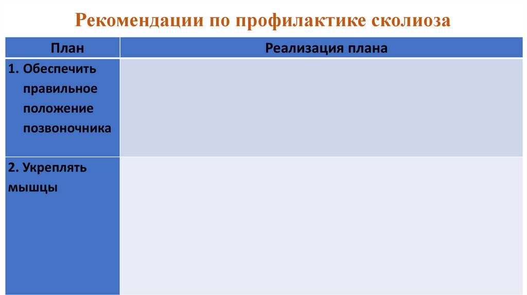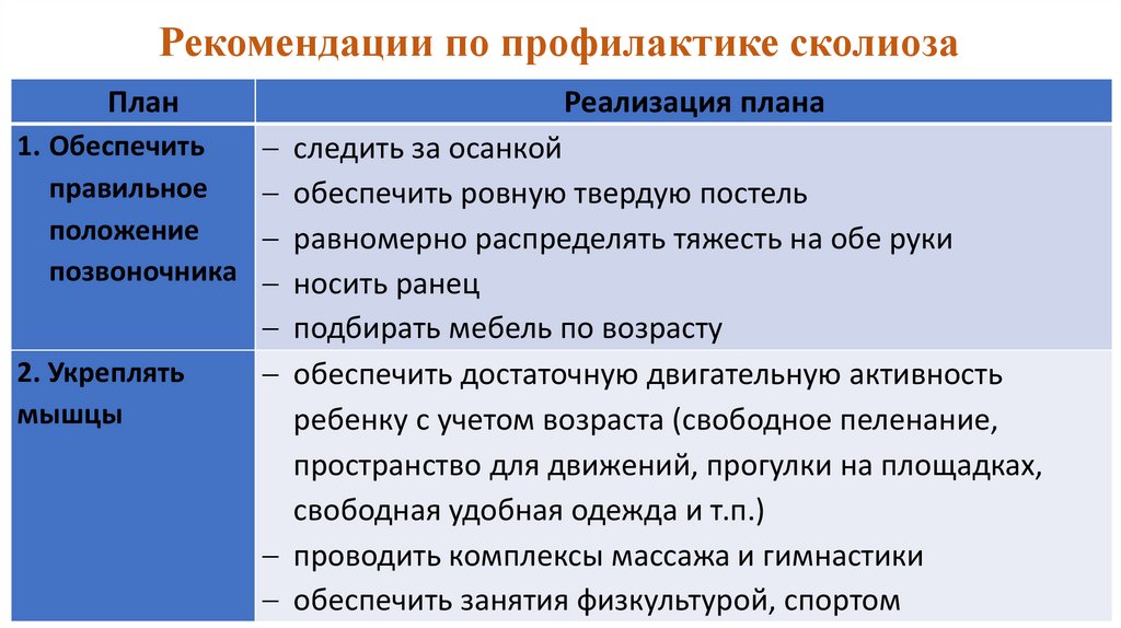 Рекомендации по профилактике сколиозаПлан