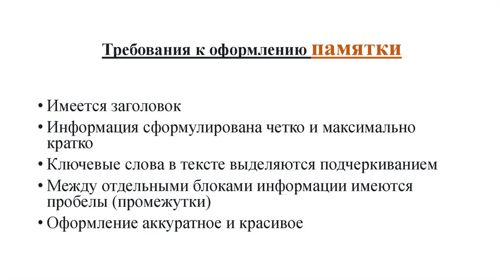 Требования к оформлению памятки• Имеется заголовок
