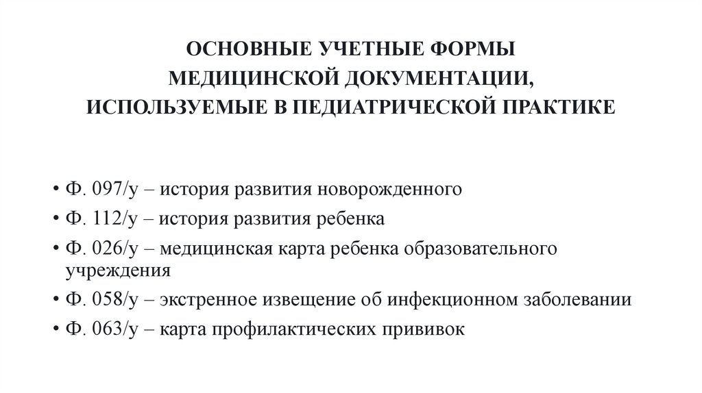 ОСНОВНЫЕ УЧЕТНЫЕ ФОРМЫМЕДИЦИНСКОЙ ДОКУМЕНТАЦИИ,