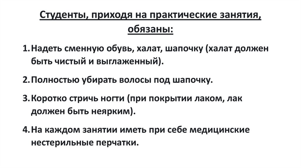Студенты, приходя на практические занятия,обязаны:
