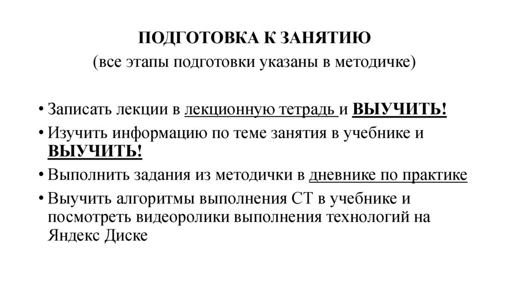 ПОДГОТОВКА К ЗАНЯТИЮ(все этапы подготовки указаны в методичке)