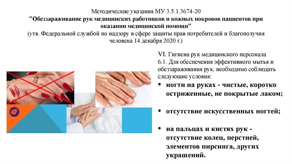 VI. Гигиена рук медицинского персонала