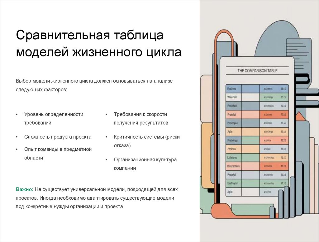 Не существует универсальной модели жизненного цикла — выбор должен основываться